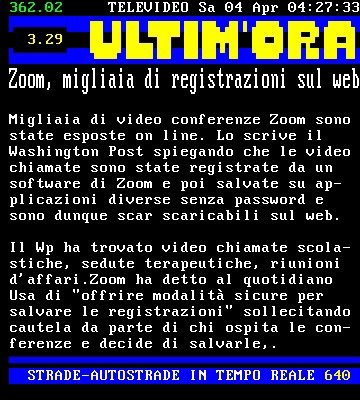 Pagina Televideo: “Zoom, migliaia di registrazioni sul web”