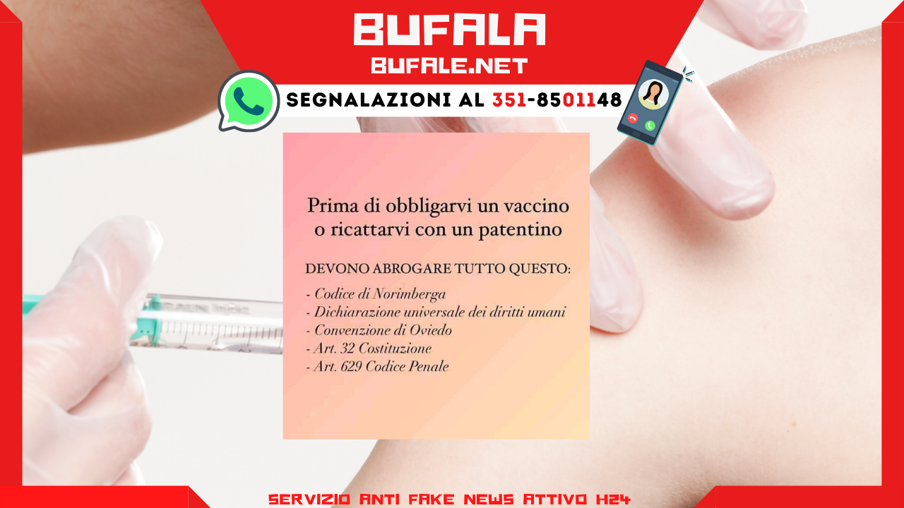 Il riferimento degli antivaccinisti è alla presenza dell’obbligo di consenso informato contenuto nel Codice di Norimberga.