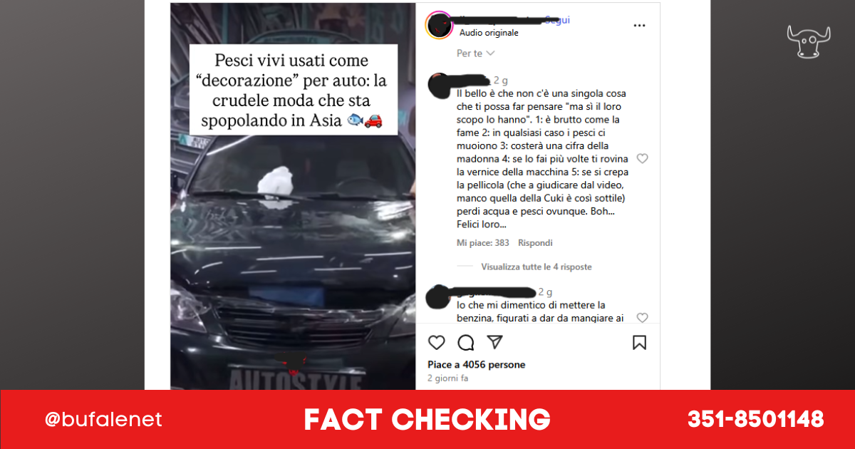Sta spopolando un video virale che mostra dei pesci vivi sulla carrozzeria delle auto, descritto come “una moda che sta spopolando in Asia” con reperti video.