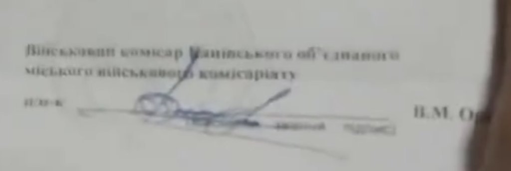 Chi ha firmato la presunta fattura/nota spese/quel che è è infatti ha menzionato il “commissariato militare” (“військовий комісар”) e si è autofirmato come organo dell’ufficio di registrazione e arruolamento militare (“війсбкомат”).