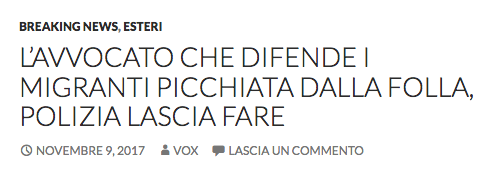 Il deprecabile titolo di VoxNews: “Avvocato che difende i migranti picchiata dalla folla, polizia lascia fare”