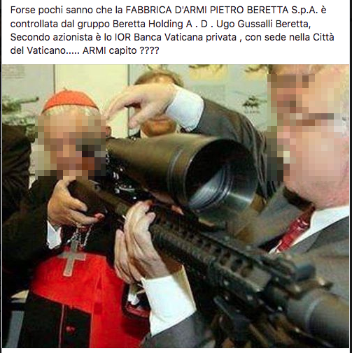 Pochi sanno che la fabbrica d’armi Pietro Beretta S.p.A. è controllata dal Vaticano… è la prova che spesso, se qualcuno vi dice una cosa che “non tutti sanno” vi sta raccontando una bufala.