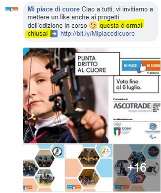 In sostanza, l’Associazione Sorriso aveva bisogno di cumulare più like possibili per ottenere i denari necessari per l’acquisto delle attrezzature sportive. Ciò che pochissimi hanno notato, però, è stato il primo commento pubblicato sotto l’immagine in gara, firmato dagli stessi amministratori della pagina Mi piace di cuore e ancora disponibile: