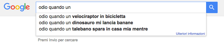 Nel nostro link precedente abbiamo elencato molte Google Bomb, risolte manualmente, in danno di personaggi famosi. A tutt’oggi invece cercando con le parole chiave odio quando un Google, o meglio il suo algoritmo ammaestrato una Google Bomb per volta, restituisce risultati quantomeno bizzarri…