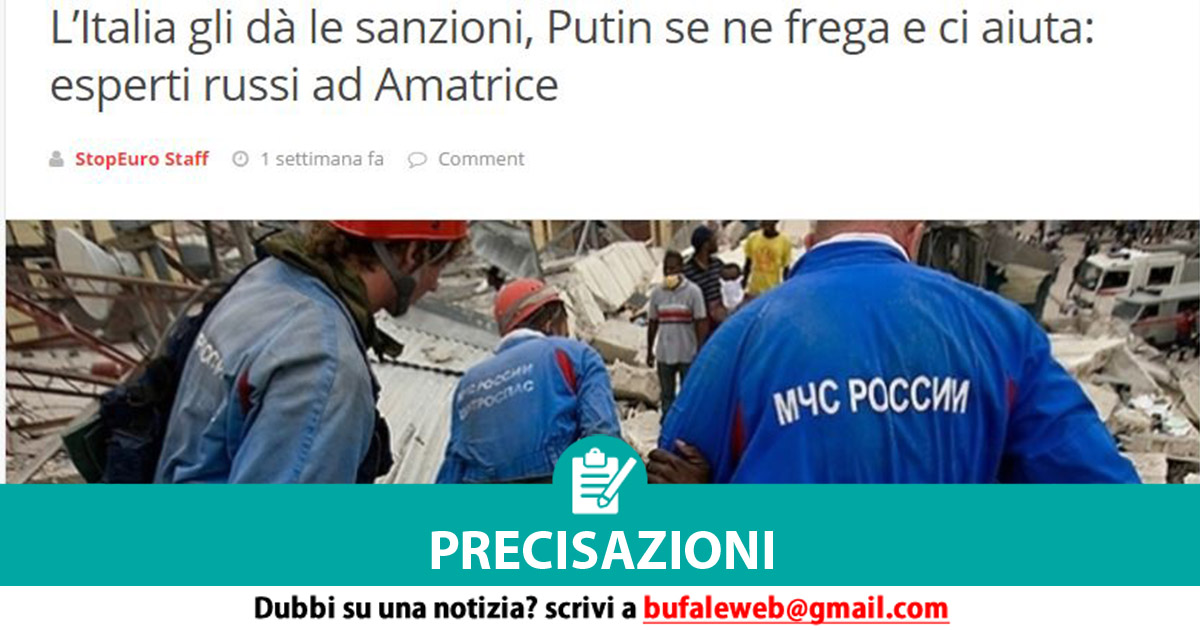 PRECISAZIONI L’Italia gli dà le sanzioni, Putin se ne frega e ci aiuta: esperti russi ad Amatrice
