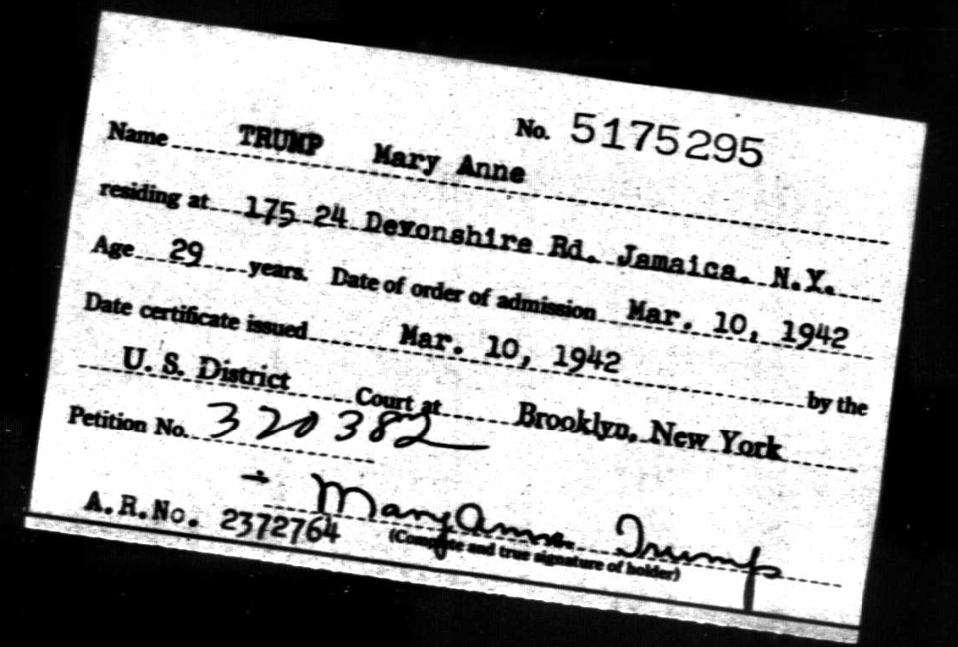 In questi anni risulta essere dunque clandestina e poi cittadina naturalizzata, ma ciò non è affatto controverso proprio per tutta una serie di permessi che le hanno concesso di permanere appunto negli Stati Uniti, ripartire e poi rientrare negli USA. Sta di fatto che il certificato di naturalizzazione risale al 1942 ed è stato rilasciato dal New York’s Eastern District Court. Non si sa ancora perché ci sia questa discrepanza e tuttavia non ci sono prove che la madre di Trump sia stata negli Stati Uniti come immigrata clandestina o che abbia violato le leggi sull’immigrazione di quegli anni, visti i suoi frequenti viaggi internazionali e il fatto che non le sia mai stato poi negato l’ingresso negli Stati Uniti al ritorno.