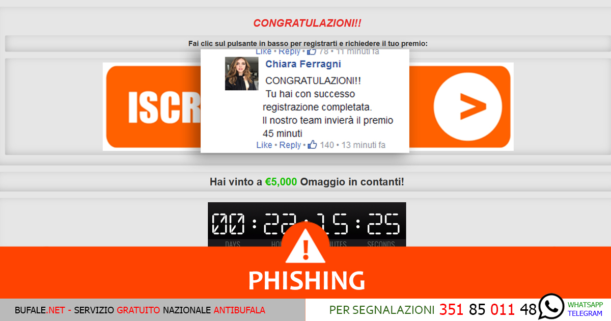 “Premio per te: 5000 euro da Chiara Ferragni”: attenti al Phishing