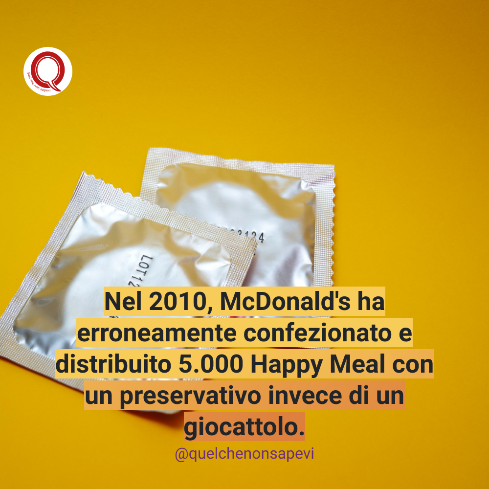 Nel 2010, McDonald’s ha erroneamente confezionato e distribuito 5.000 Happy Meal con un preservativo invece di un giocattolo.