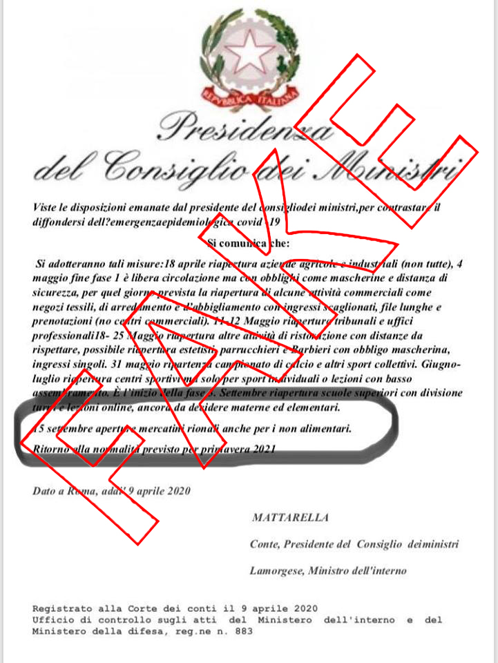 Nuova forma per una stessa bufala – Presidenza del Consiglio dei Ministri: ritorno alla normalità previsto per il 21 Aprile 2021