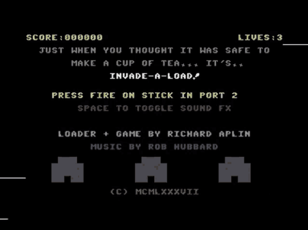 Musiche di importanti compositori dell’epoca come Rob Hubbard accompagnavano un testo in cui venivi invitato a “posare la tazza di the”, simbolo dell’attesa British e divertirti con un minigioco basato su Space Invaders e altri successi datati e semplici del passato in attesa del pezzo forte.