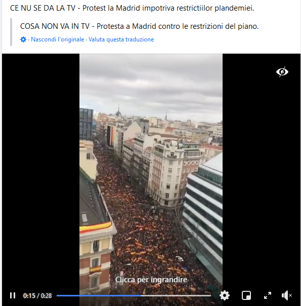 Se ci cascate una volta, è colpa di chi vi ha ingannato parlandovi di una protesta a Madrid contro le restrizioni del piano sanitario.