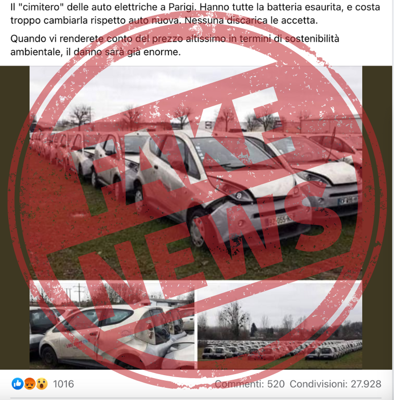 Esiste secondo il mondo del complotto un cimitero di auto elettriche in Francia che non esiste. Una nota fake news che circola da anni, di cui ci siamo occupati l’ultima volta esattamente un anno fa.