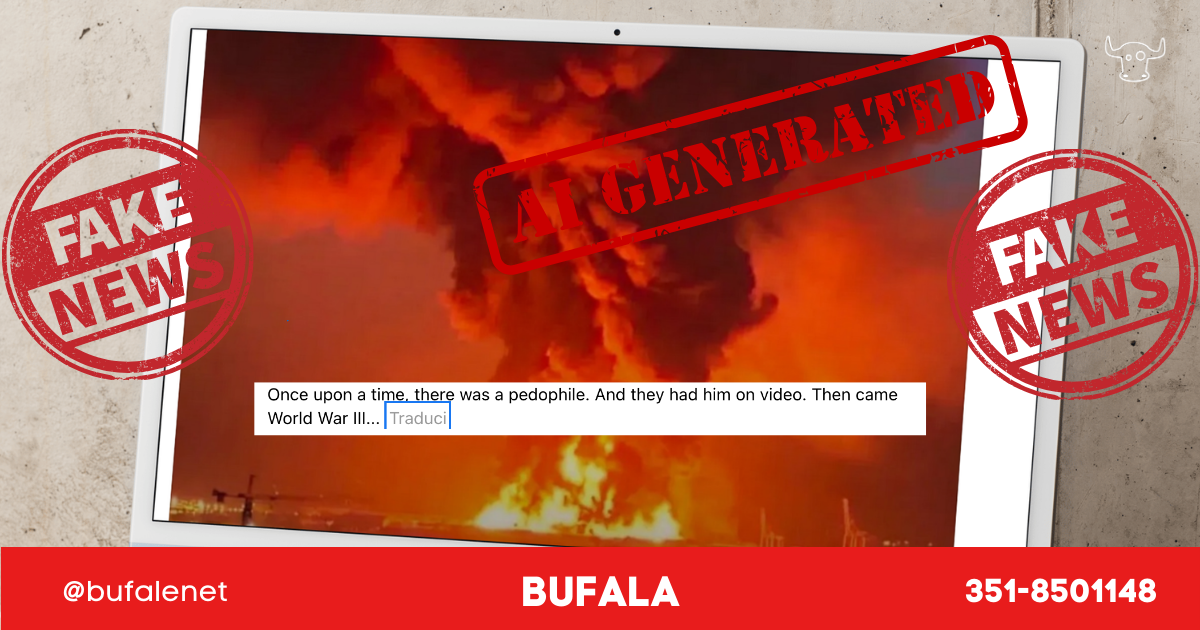 La versione “riveduta e corretta dalla AI” (Google AI, per essere precisi, in base al SynthID) aggiunge tutti gli elementi necessari a rendere il testo virale: una colonna di fumo nero ben più ricca e corposa, cieli rossi dall’atmosfera infernale, un rogo di dimensioni ipertrofiche ed un commento che impreca contro le elite pedofile che vogliono la terza guerra mondiale.