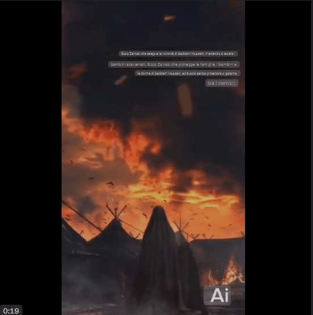 Lo spezzone in AI quindi fa riferimento alla storia di Zainab, ed è stato impropriamente collegato al conflitto in Palestina.