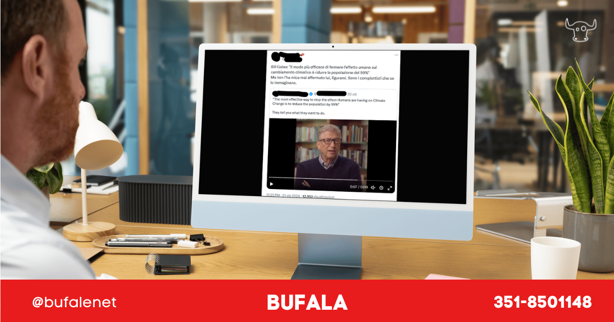Ci segnalano i nostri conttti un video pubblicato su X con un breve spezzone in cui Bill Gates che vuole ridurre del 99% la popolazione mondiale. Il video è stato inizialmente pubblicato da una “spunta blu” dedita a pubblicare messaggi contro Bill Gates, ed è stato immediatamente rilanciato da un account Italiano della c.d. galassia “Mattonista”, ovvero il gruppo di pressione di orientamento reazionario che, ispirandosi alle posizioni politiche dell’ex presidente statunitense Donald Trump, lancia i propri slogan, in particolare attraverso Twitter, accompagnando alla propria firma l’icona di un mattoncino