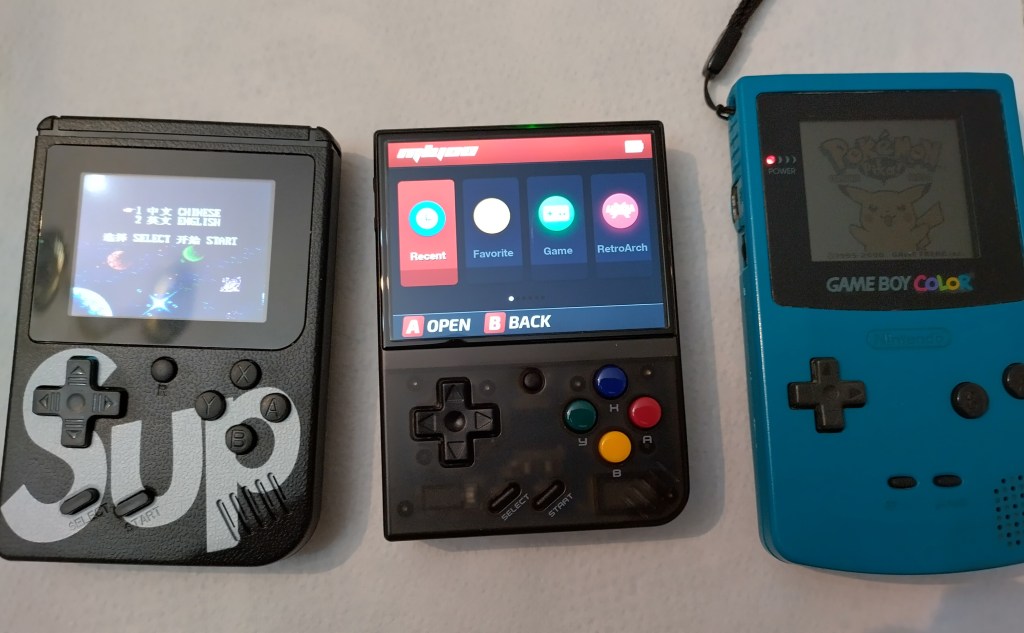 Da sinistra a destra: Sup 400-in-1, Miyoo Mini Plus, GameBoy Color