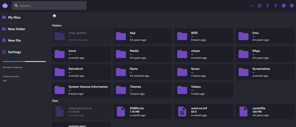 Altrimenti basta copiare sulla schedina a mano tutti i file di OnionOS, accertandosi di aver copiato anche i c.d. “files nascosti” e inserire la scheda nel Miyoo per finire l’installazione.