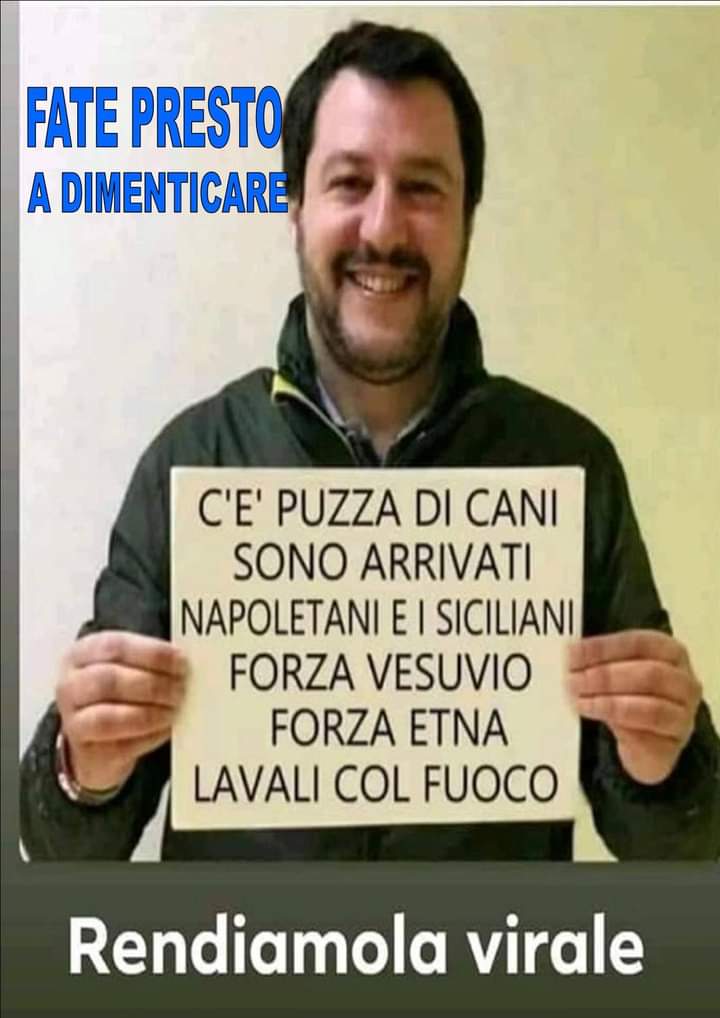 Fate presto a dimenticare: “C’è puzza di cani, sono arrivati i napoletani e i siciliani. Forza Vesuvio, forza Etna, lavali col fuoco”. Rendiamola virale.