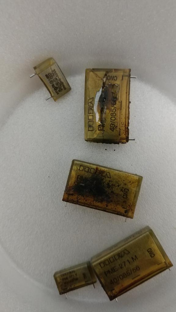 Condensatori di filtro RIFA esplosi, fonte EEVBlog