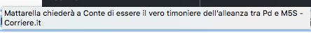 Il trucco è lo stesso di sempre: il nostro amico bufalaro ha fatto il dump completo di una pagina del Corriere della Sera, così completo che il tooltip della stessa riporta come titolo originale Mattarella chiederà a Conte di essere il vero timoniere dell’alleanza tra PD e M5S