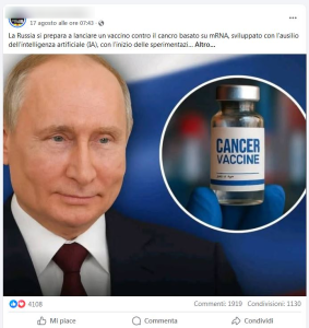 Finché ciò non avverrà, siamo di fronte soprattutto a un’operazione mediatica, utile a rafforzare il prestigio interno ed esterno del Cremlino in un momento di isolamento politico e scientifico. Il rischio, come sempre, è alimentare false speranze nei pazienti e distogliere l’attenzione dal fatto che la vera innovazione in questo campo si sta già sviluppando altrove, con rigore e trasparenza. In attesa di prove concrete, la prudenza resta l’unica risposta seria. Il vaccino russo contro il cancro, al momento, è soprattutto un titolo giornalistico, non una conquista scientifica.
