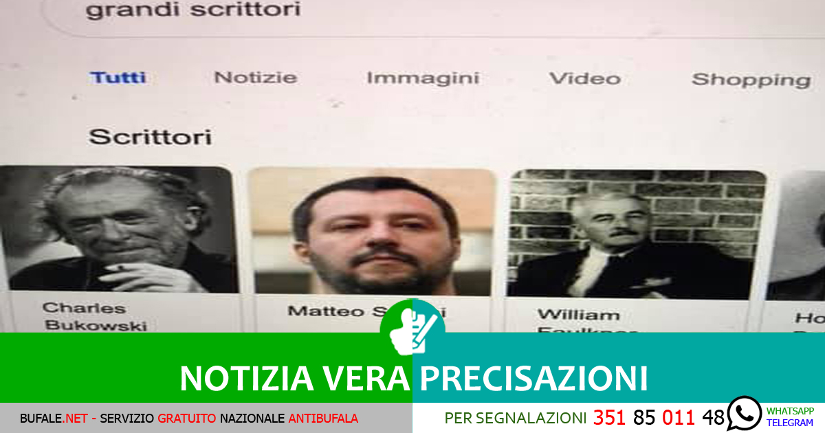 Per un breve periodo gli utenti della Rete si sono meravigliati di una grande scoperta: incontrare Salvini tra i grandi scrittori italiani (e tra i grandi giornalisti) nonostante il Ministro degli Interni non sia tecnicamente né scrittore, né giornalista.