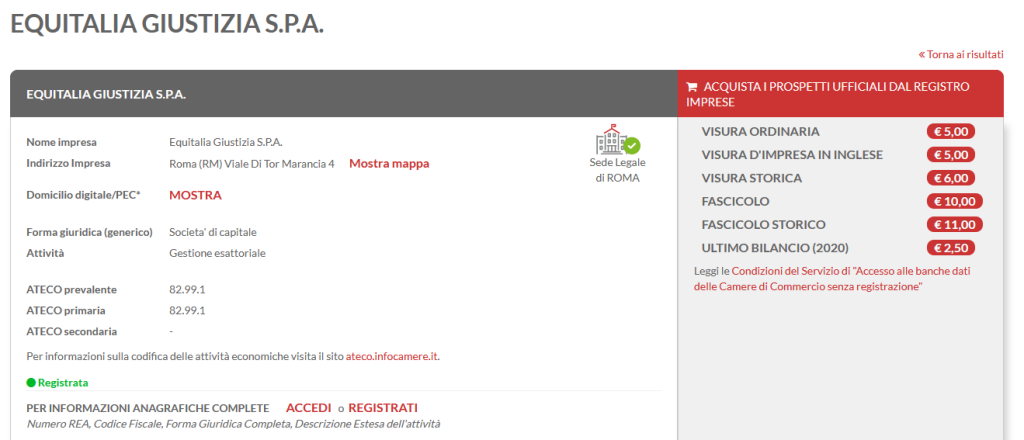 Circostanza questa facilmente riscontrabile con una semplice Visura Camerale, accessibile mediante gli appositi portali o presso le sedi della Camera di Commercio