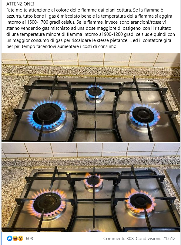 Se la fiamma è gialla ci vendono gas mischiato con l’ossigeno (anche no)