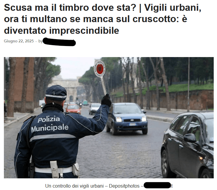 Si tratta di “terrorbait”: titoli volutamente fuorvianti e assurdi, come “Senza timbro non circoli più”, creati apposta per far condividere gli articoli e provvocare indignazione e condivisioni.