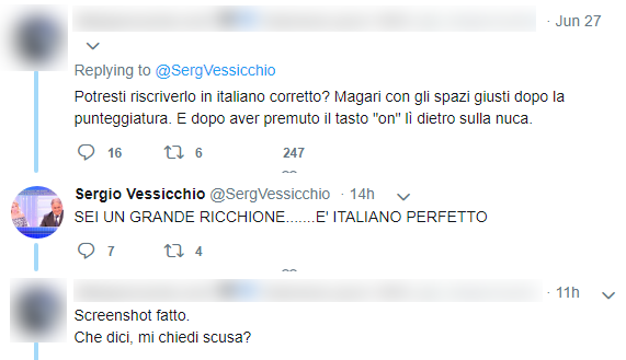 Ancora, Sergio Vessicchio insulta con veemenza chi contesta il suo modo di esprimersi e di scrivere: