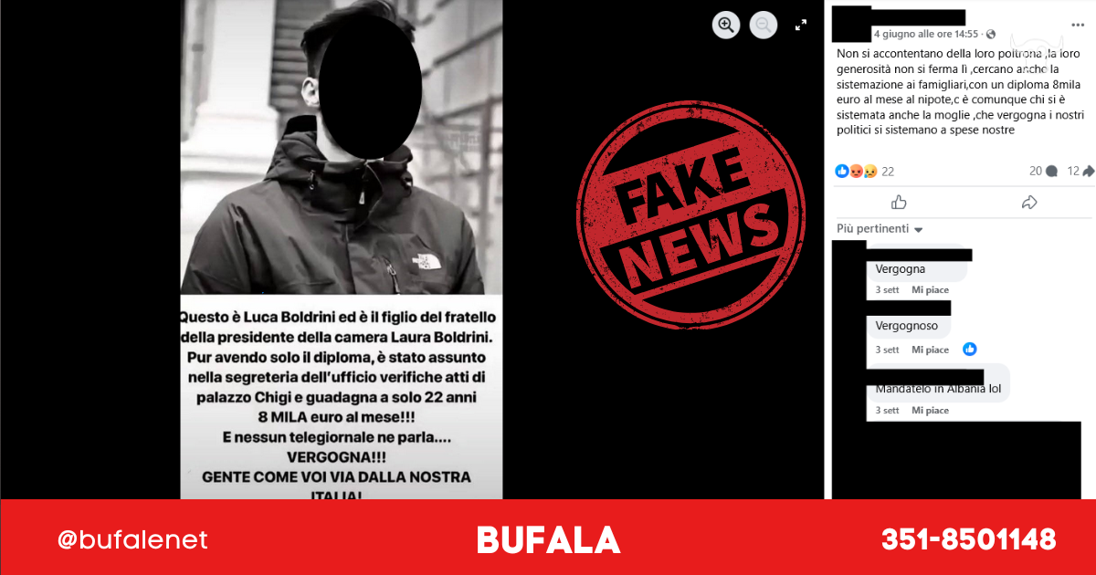 Ovviamente dal 2018 ben sappiamo che non esiste alcun Luca Boldrini, anzi sappiamo che il ragazzo della foto era un incolpevole cittadino di Rieti messo in mezzo in una “card” creata da alcuni amici per farsi beffe di lui e diventato oggetto di una fake news già affrontata da Bufale.net e altri siti di fact checking.