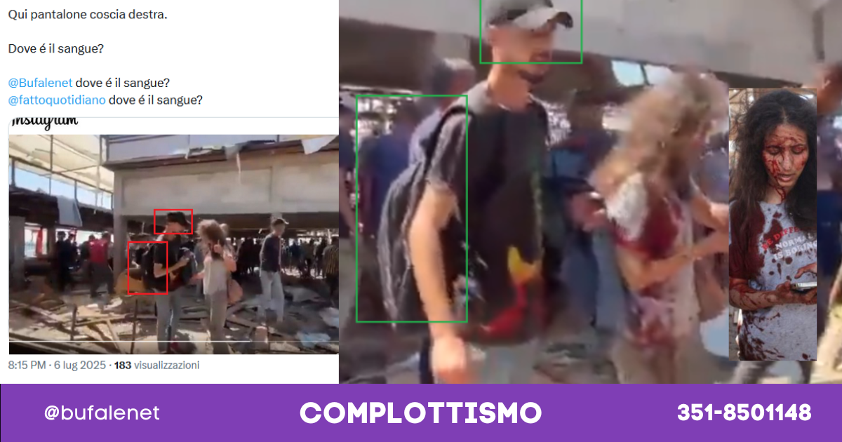 Si vede del sangue che scorre sul lato sinistro del corpo: l’account negazionista GAZAWOOD, dedito al negazionismo ed alla diffusione della Teoria di Pallwood, pubblica un video della giornalista che si lava il viso.