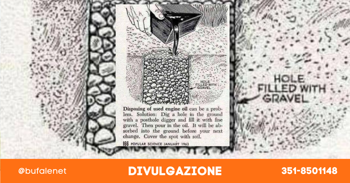 Sì, Popular Science suggeriva di seppellire l’olio esausto in giardino. Parliamo del noto mensile di divulgazione scientifica di cui abbiamo parlato giusto recentemente, in quanto nel numero di 1951 suggeriva alle casalinghe di gettare le pile a torcia (tipo D) nei camini accesi per tenerli puliti e assistere a buffi giochi luminosi, salvo poi cambiare idea dieci anni dopo e decidere di ricordare il rischio di esplosione delle allora moderne batterie al litio sigillate.