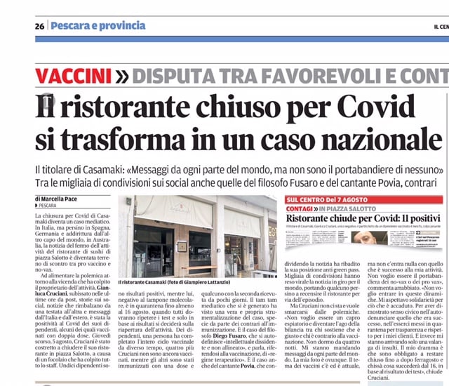 Ma non diventi il fatto che solo un dipendente era vaccinato al Casamaki una scusa per rendere il ristorante oggetto di facezie. Sono stati onesti nel rispettare la quarantena, e questa storia dimostra che tutti coloro che hanno chiesto il vaccino devono essere posti in grado di vaccinarsi prima della stagione autunnale.