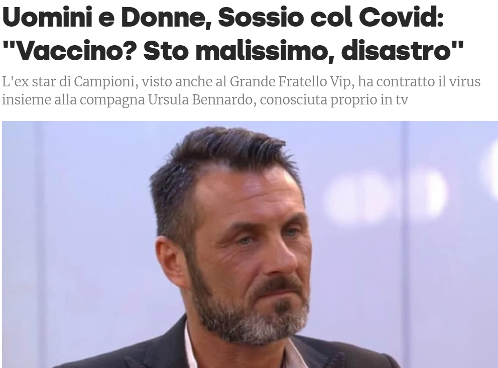 Chi si ferma al titolo potrebbe confondersi: il calciatore sta male per il Covid o per il vaccino? La domanda sorge spontanea in quanto dopo la parola vaccino leggiamo “sto malissimo, disastro”, dunque si potrebbe pensare che Sossio Aruta stia male a seguito del vaccino ricevuto, quasi in contraddizione con la frase precedente.