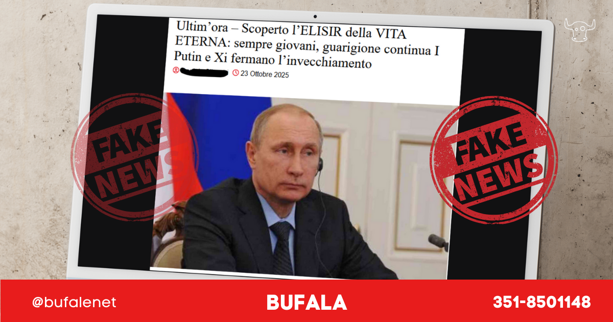 Da sempre l’essere umano ha inseguito il sogno dell’immortalità, ma quando esso si incarna in una clickbait che annuncia trionfale che Putin ha scoperto l’elisir della vita eterna possiamo essere certi che non la vita eterna è stata raggiunta, ma la clickbait, ovvero quel genere di titolo con tutte le parole chiave del momento buttato sul piatto per attirare il click.