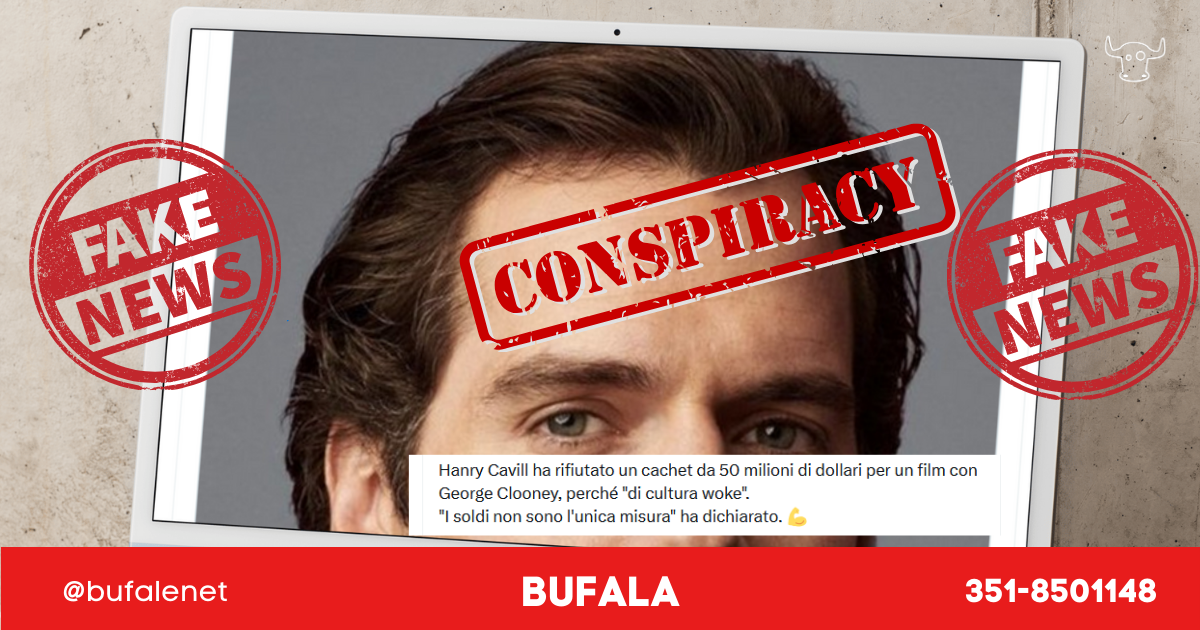 Ci segnalan un post X che riporta la storia di Henry Cavill che rifiuta di fare un film woke con George Clooney. Si tratta ovviamente di una fake news.