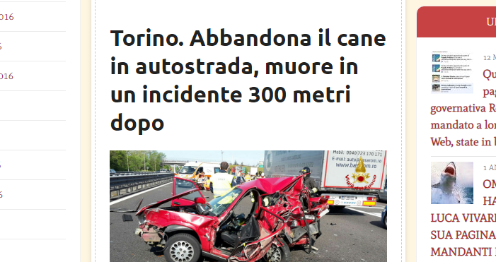 Una bufala per scatenare le reazioni compiaciute degli animalisti è un ottimo acchiappa click. In questo caso, si tratta di un vecchio articolo, di circa un anno fa, in cui il blog People have the power racconta come un automobilista torinese avesse abbandonato il proprio cane in autostrada, per poi morire in un incidente dopo […]