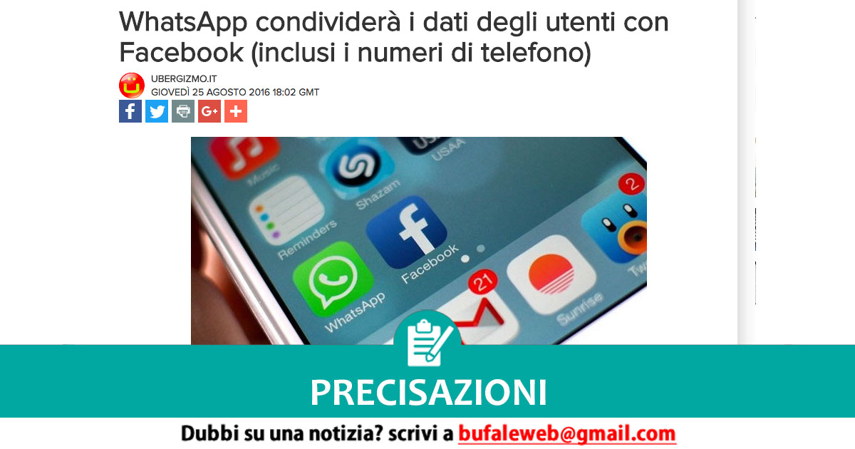 Ci segnalano i nostri contatti il seguente articolo, targato newsrepublic Sapevamo che prima o poi sarebbe successo. È da quando Facebook ha acquisito WhatsApp che si discute della procedura confermata oggi. WhatsApp inizierà a condividere i dati dei suoi utenti con Facebook. Tra i dati condivisi vi saranno anche i numeri di telefono, che torneranno […]