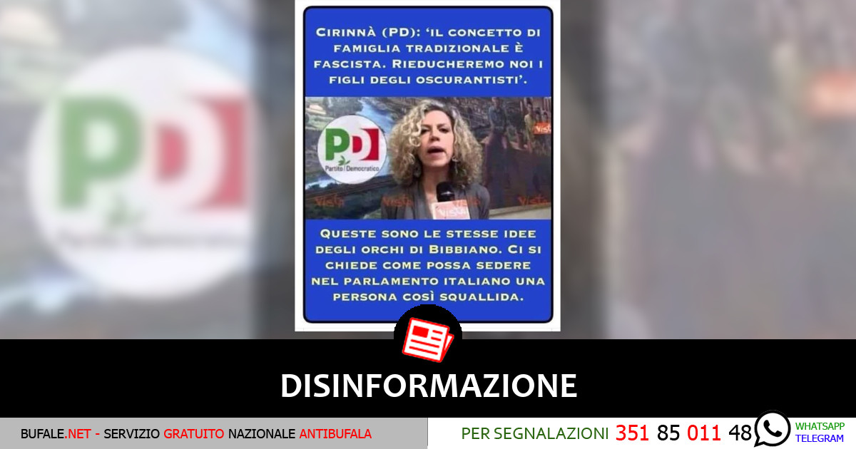 Dopo la lunga seduta in Senato per le dimissioni del premier Giuseppe Conte le fake news si ripropongono nonostante le smentite dei diretti interessati, e quello di oggi è il caso di Monica Cirinnà. Alla senatrice dei Dem, in un meme, viene attribuita la frase: “Il concetto di famiglia tradizionale è fascista. Rieducheremo noi i figli degli […]