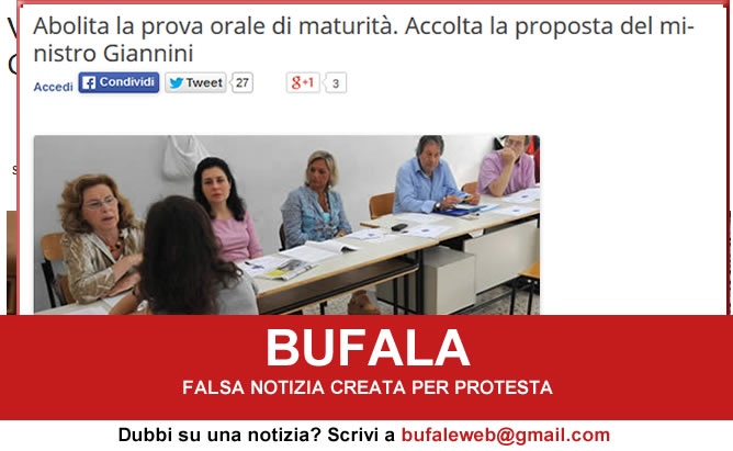 E’ una Bufala perchè è una notizia spacciata dal corrieredelmattino.it solo per avere nuovi “Mi Piace” con METTI MI PIACE PER CONTINUARE A LEGGERE L’ARTICOLO”… Tranquillizzate i vostri alunni e quest’anno si esercitino ad esporre, perché l’orale è una importante componente dell’esame. Insomma STUDIATE RAGAZZI è importante