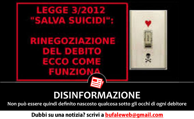 Ci segnalano i nostri contatti una notizia relativa al c.d. “fallimento familiare” o “legge salvasuicidi”, una norma che, secondo i redattori dell’articolo, fa parte dei misteri poco conosciuti che “nessuno ti dice”, che i “potenti” vogliono mantenere nascosti e che consentirebbe ai privati di dichiarare fallimento. La notizia è in parte corretta, ma arricchita di una […]