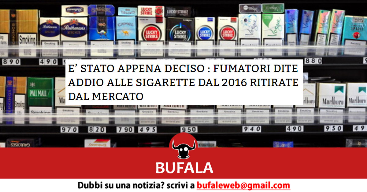 Il sito Ultimenotizie pubblica un articolo in cui si afferma che le sigarette saranno ritirate dal 2016. Panico per i fumatori? Solo per quelli che ci hanno creduto.