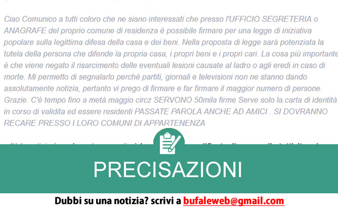 PRECISAZIONI Referendum Legittima difesa: legge per rafforzare inviolabilità del domicilio – bufale.net