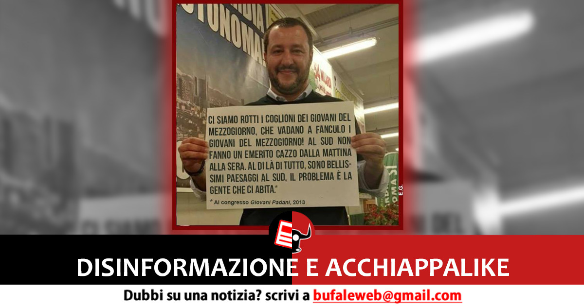 Un post fuorviante sta raggiungendo cifre importanti di condivisioni sui social network: Il leader della Lega Matteo Salvini è qui oggetto di disinformazione, in quanto le affermazioni attribuitegli esistono, ma non sono parole sue. L’audio originale del Congresso Giovani Padani del 2013 è disponibile nel canale ufficiale di Daniele Sensi: All’inizio del video, lo stesso Salvini annuncia gli interventi di Luca Salvetti di Valle Camonica. Le […]
