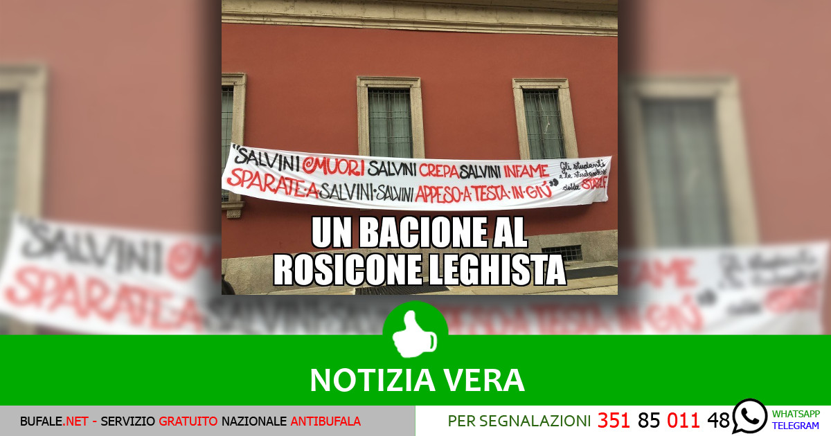 Uno striscione con la scritta “Salvini muori, Salvini crepa, Salvini infame, sparate a Salvini, Salvini a testa in giù” è stato ripreso da Panorama che in un articolo ci fa notare che ci troviamo in via Festa del Perdono, a Milano, dove ha sede l’Università Statale. Il virgolettato è accompagnato dalla firma a carico degli studenti […]