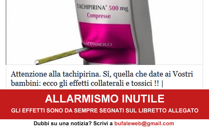 Ci segnalano i nostri contatti una serie di articoli dedicati ad evidenziare presunti effetti nocivi della Tachipirina, farmaco a base di Paracetamolo usato come analgesico ed antipiretico, che di condivisione in condivisione viaggiano per i Social Media. Che la Tachipirina, come ogni altro farmaco, possa avere effetti collaterali è fatto notorio. Difatti non è mai, e sottolineamo mai […]