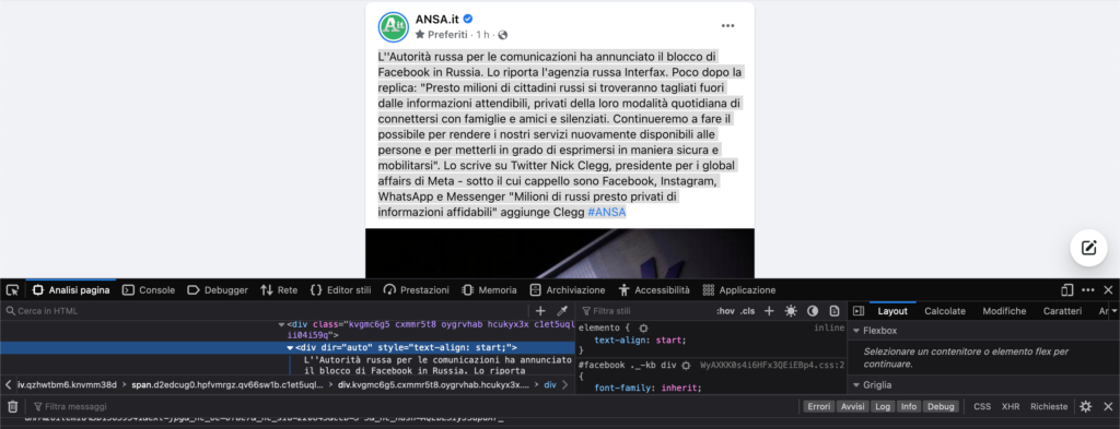 Un testo dove riusciamo a creare una convincentissima screenshot dell’ANSA, con loghi e tutto, dove Putin e la Fi*a vengono lodati assieme ai Poteri Forti.