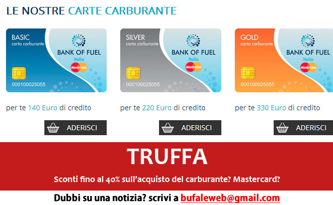 TRUFFA – Bank of Fuel Italia e le schede prepagate per la benzina – Bufale.net