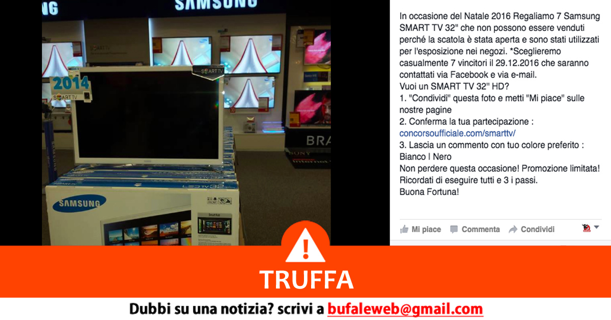 TRUFFA In occasione del Natale 2016 Regaliamo 7 Samsung SMART TV 32” che non possono essere venduti – bufale.net